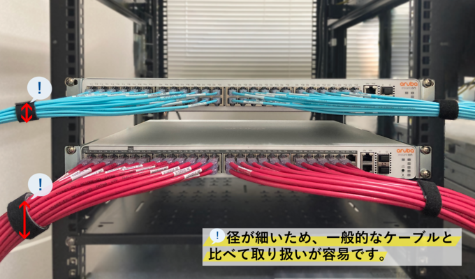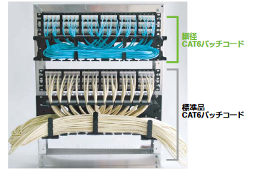TSUNET-EX細径シリーズは標準品と比べ外径が細いため、ラック内のスペースを確保しやすく、大幅に作業性を向上させることが可能です。