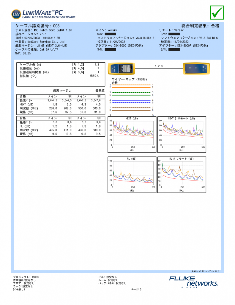 ※適合試験は、Fluke社製テスターを利用し、パッチコード適合試験を行います。試験は識別ラベル貼付け済み製品のみの対応となります。
